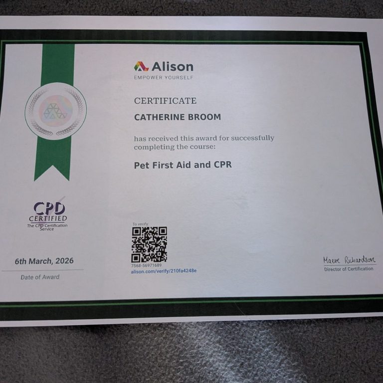 Fully certified in pet first aid to ensure your pets are safe and cared for in all situations.